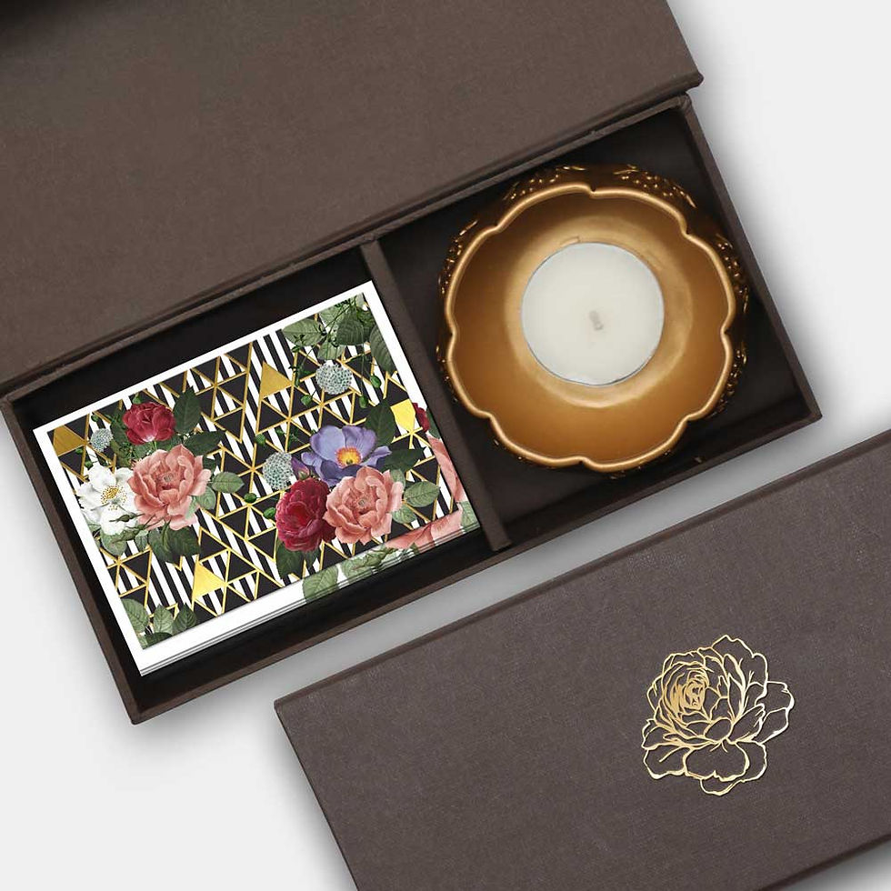 Add that special touch with a set of personalised gift cards & a beautiful tea light votive or a jar of sweet bites.